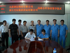 2010年7月2日,我公司與商丘交運(yùn)集團(tuán)貨運(yùn)有限公司簽訂合作協(xié)議。我公司成立商丘分公司,依托對(duì)方資源優(yōu)勢(shì)、地域優(yōu)勢(shì)和管理優(yōu)勢(shì),開(kāi)展鋼材產(chǎn)品配送業(yè)務(wù)和其他市場(chǎng)貨運(yùn)業(yè)務(wù)。